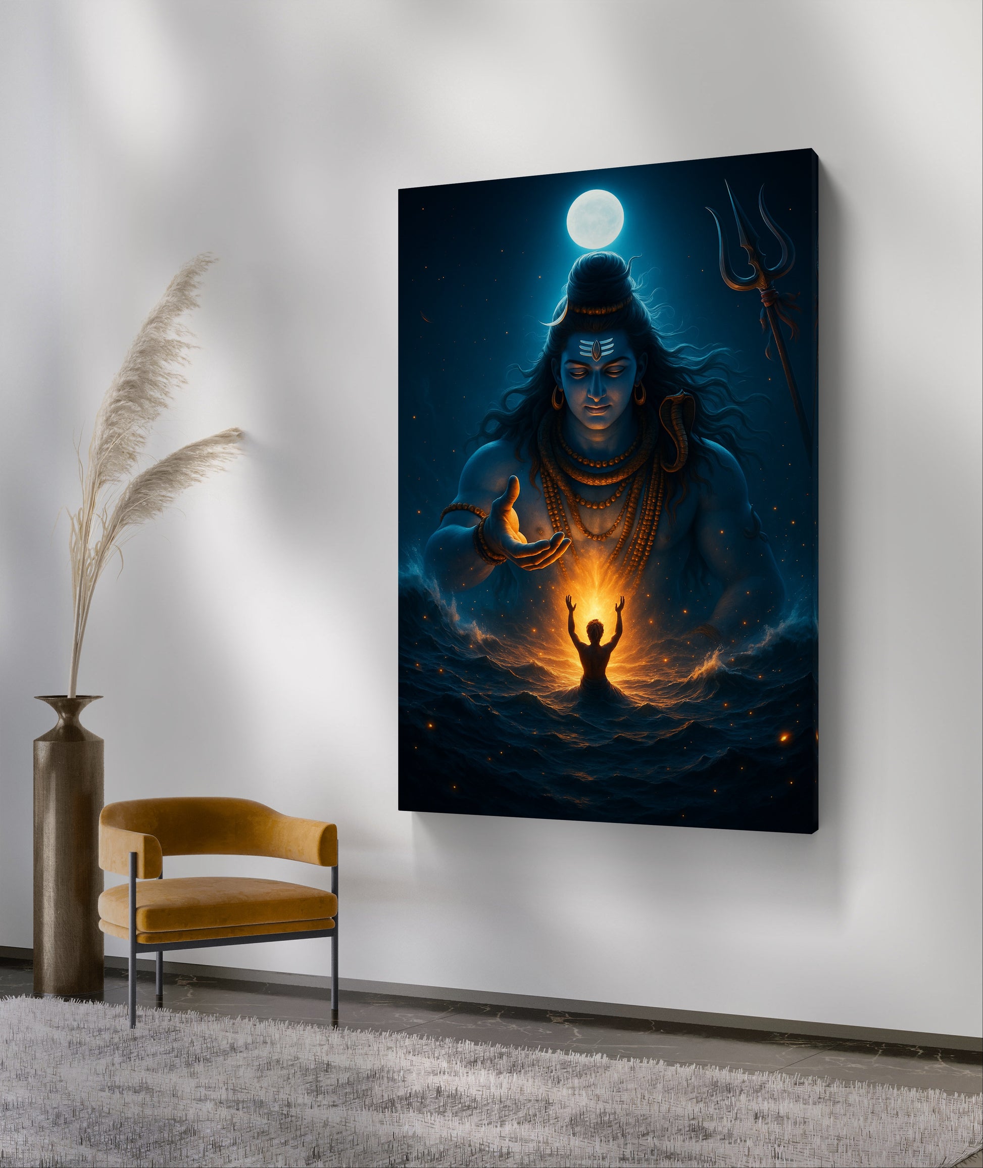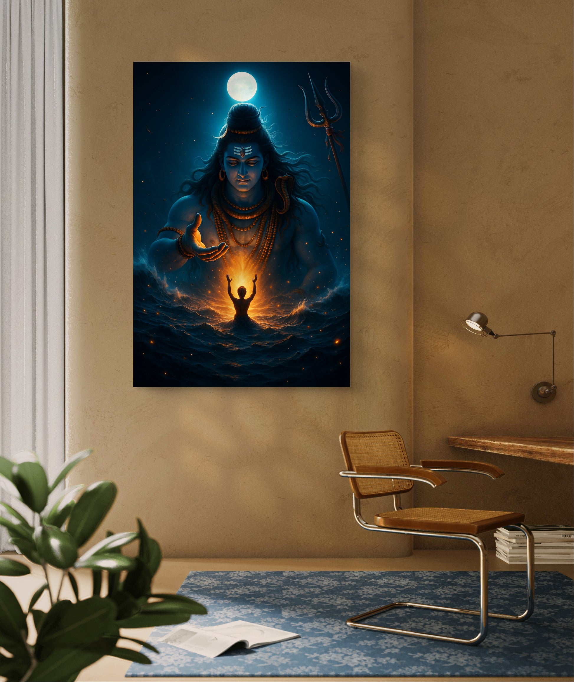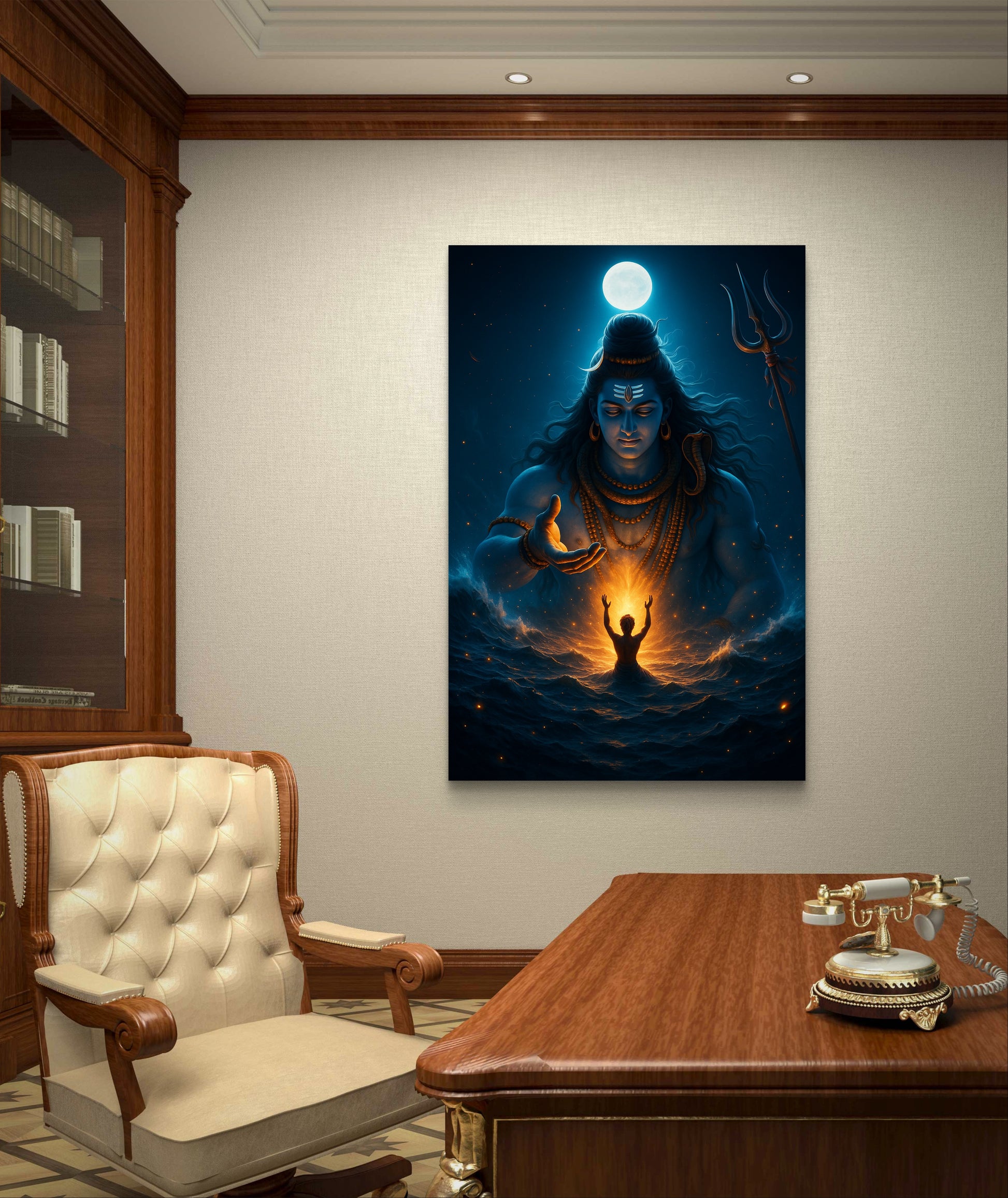 Shiva with Devotee Premium Acrylic Wall Art for Home & Temple Decor